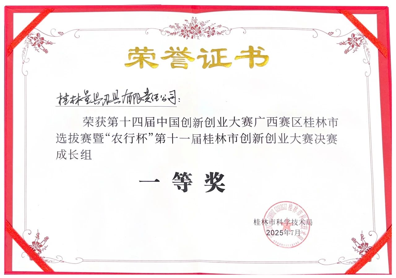 中國創新創業大賽是國內極具影響力的賽事,本次桂林市選拔賽更是匯聚了來自高端裝備制造、新一代信息技術、生物醫藥等領域的擁有強勁實力的頂尖企業。能夠在眾多實力強勁的對手中脫穎而出奪得一等獎,充分展現了桂量在技術研發與市場潛力上的硬核實力。